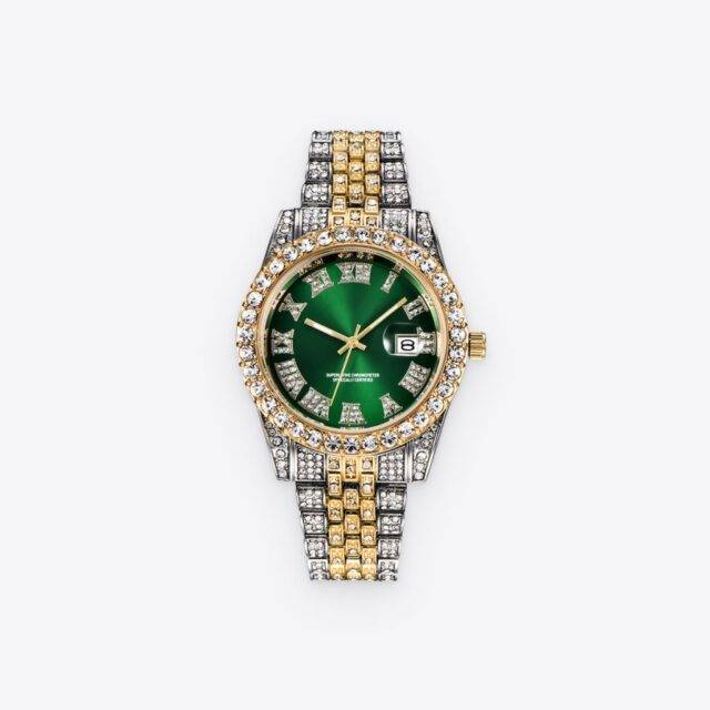 The watch is of a bright golden yellow color. Its face and 9.4 in. long band are enchased with rhinestones, creating a beautiful gleam as they catch the light.