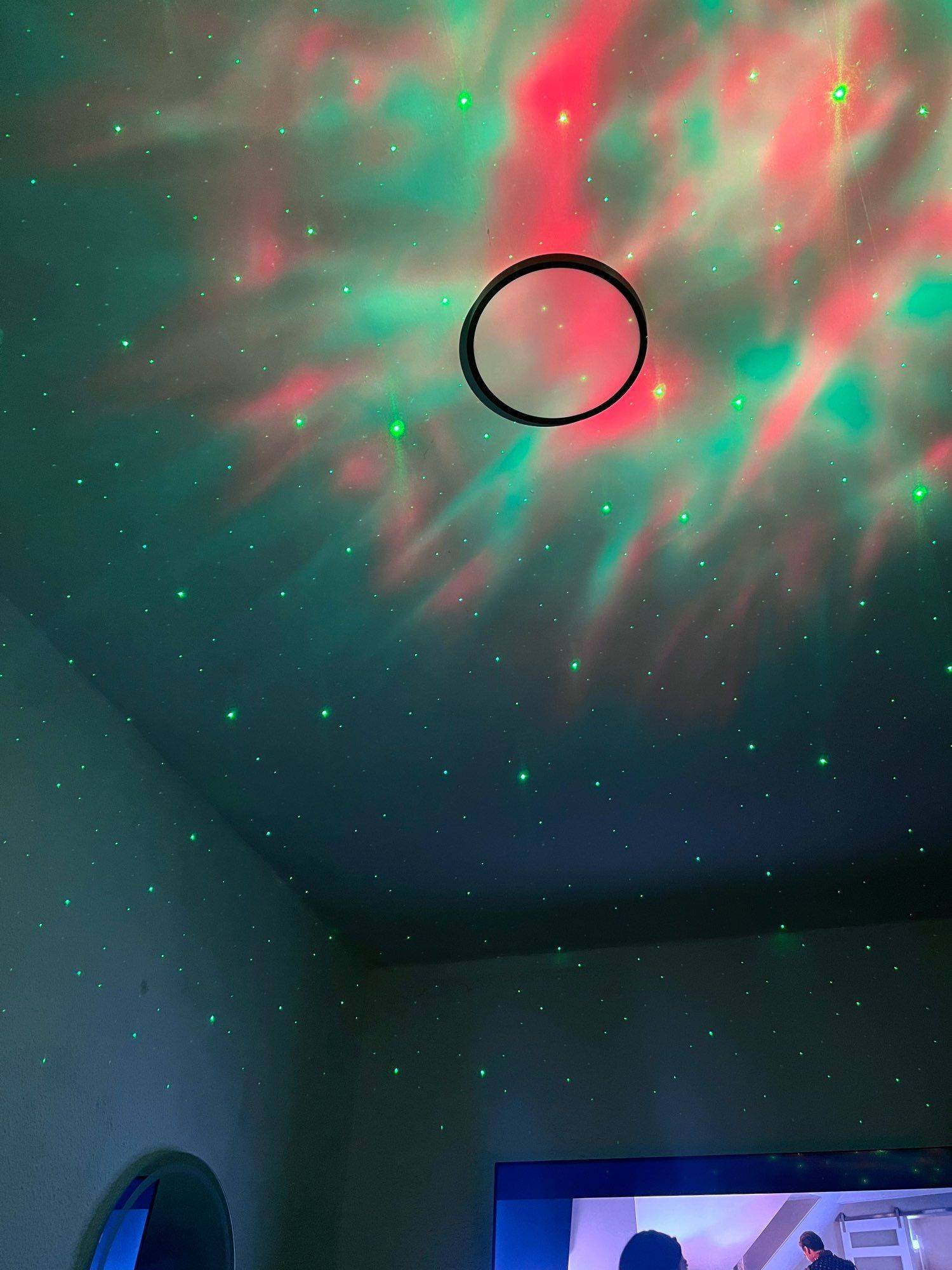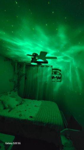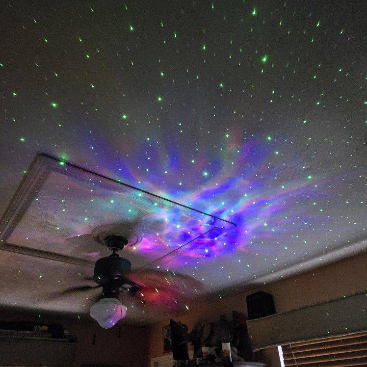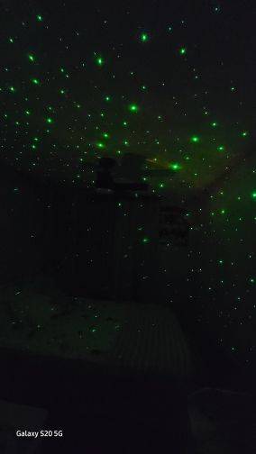 Looks super, and the nebulae move and you can change color, the stars are always green if they were white it would be perfect