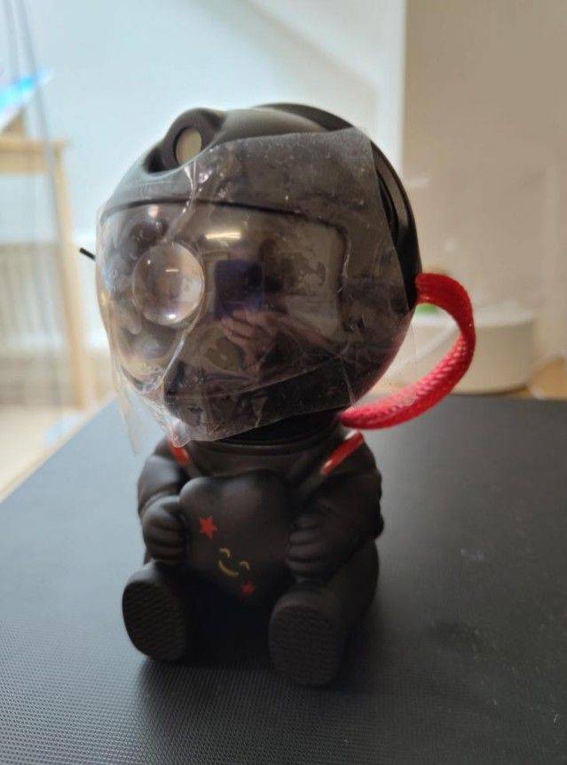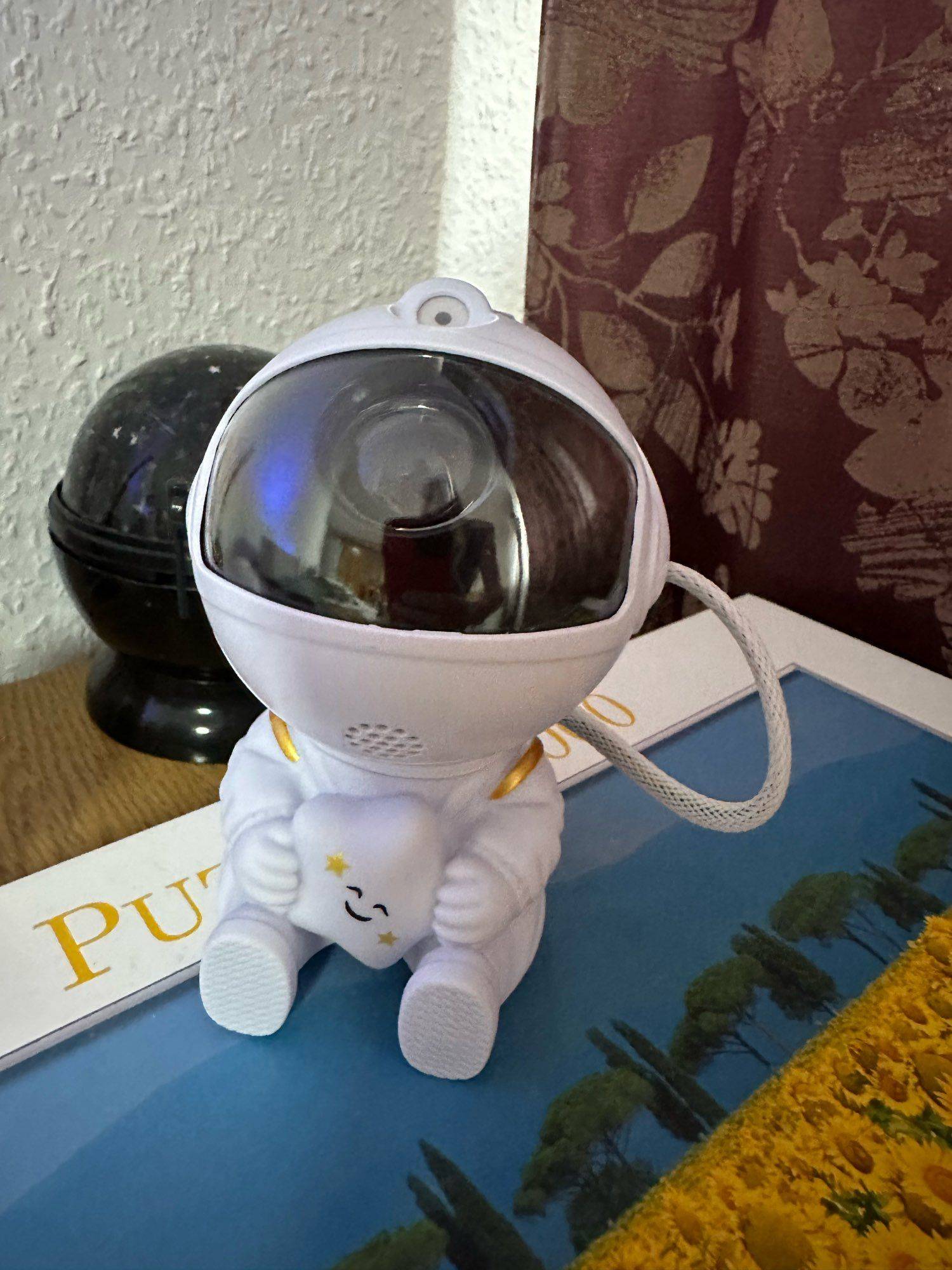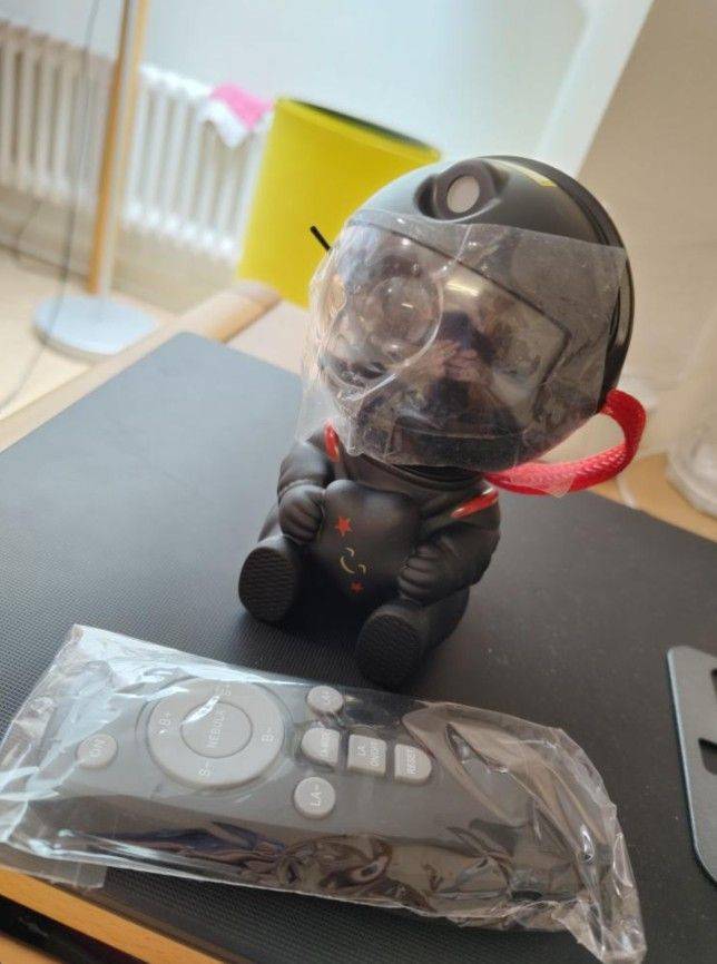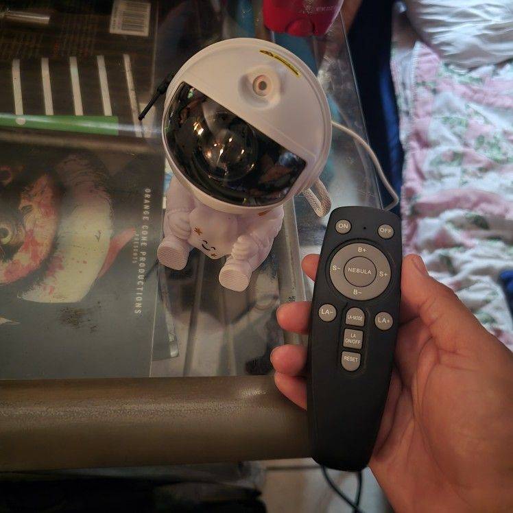 Very cool projector, the package was not damaged, the package includes: Projector, remote, C-tab cord. The project itself also has 3 control buttons. Can adjust the shades, brightness level, the astronaut head itself is movable and can set as you like! The children liked it very much